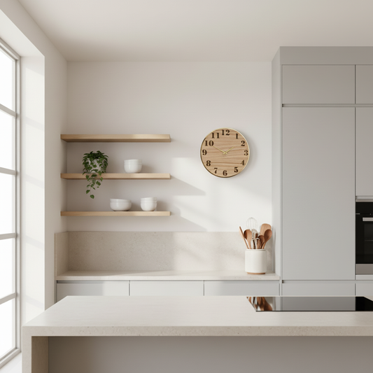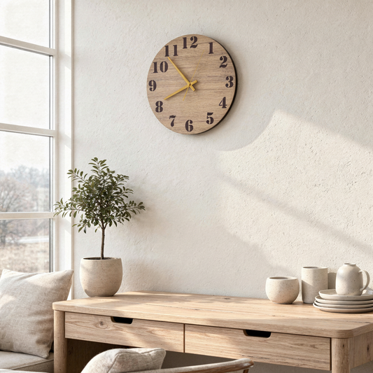 Dykk ned i en verden av tidløs eleganse med vår nye veggklokke i eikefarget design...