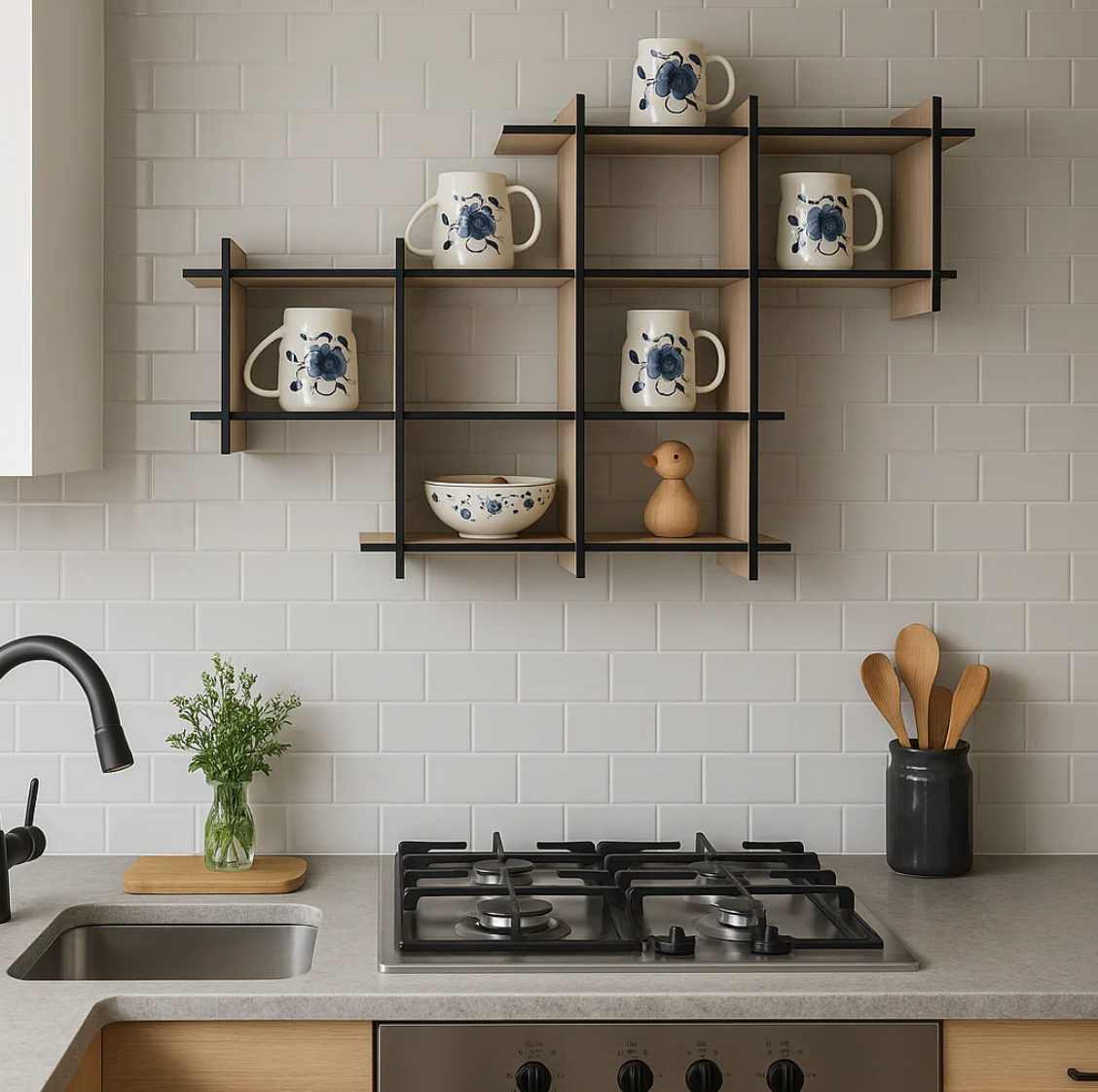 Eikehyllen måler 55 × 70 cm og har hele 7 rom. Det gir rikelig med plass til å organisere og vise frem dine favorittgjenstander, kopper, pynt og mye mer. Enten du plasserer den i stuen, på soverommet eller kjøkkenet, vil denne hyllen være et vakkert og funksjonelt tilskudd til innredningen.