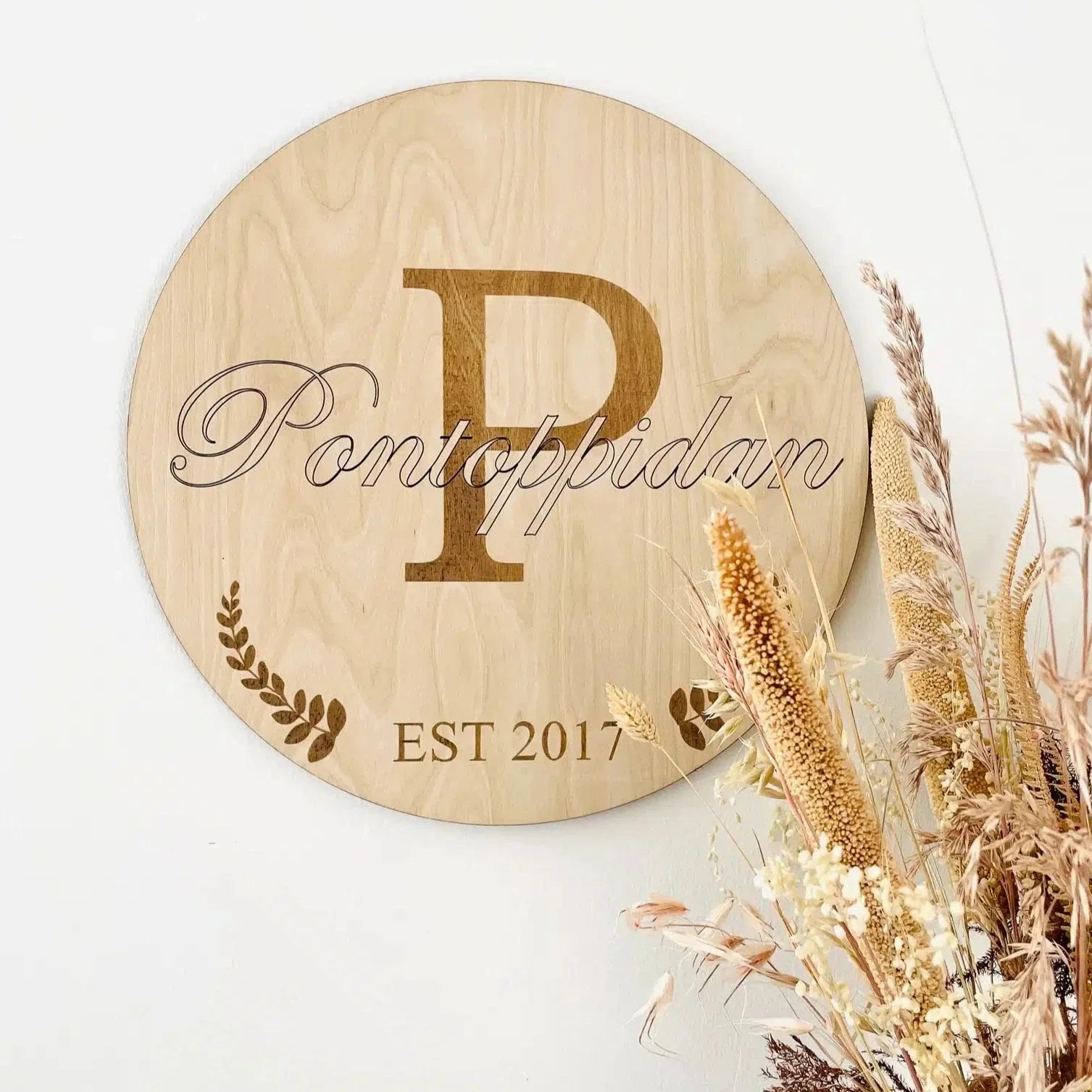 Et flott design som vil pynte opp i ethvert hjem. Dette er et svært personlig skilt, ettersom det er ditt eget etternavn og forbokstav som står i fokus.