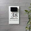 Med integrert solcellefunksjon trenger du ikke å bekymre deg for batteribytte – lampen lades automatisk og tennes når det blir mørkt. Det gjør løsningen både stilren og praktisk, og gjør dette husnummeret til en perfekt løsning for enhver inngang eller fasade.