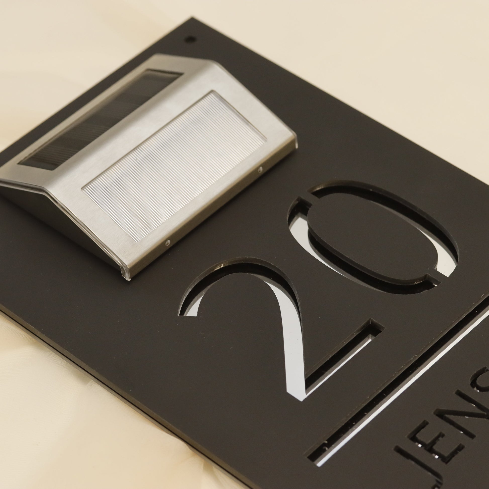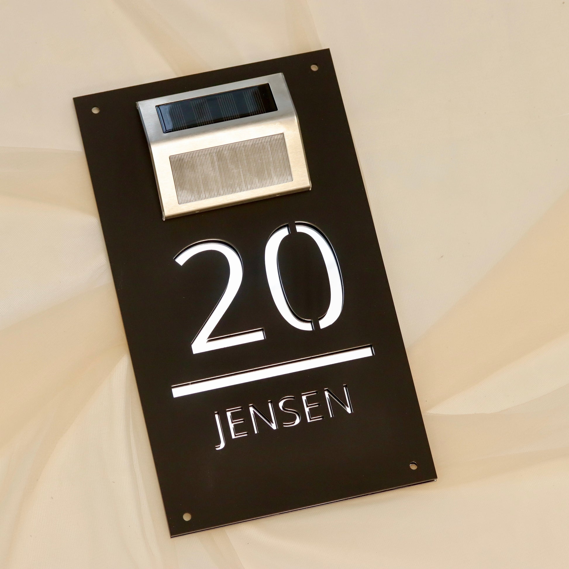 Dette elegante og stilige husnummeret med belysning er lett å montere og gir hjemmet ditt et moderne preg. Det er laget av holdbart akryl som sikrer lang levetid, og lampen kan tilpasses med tekst etter eget ønske.