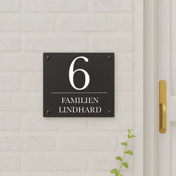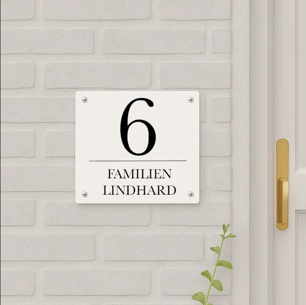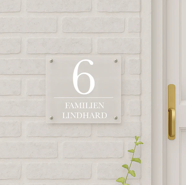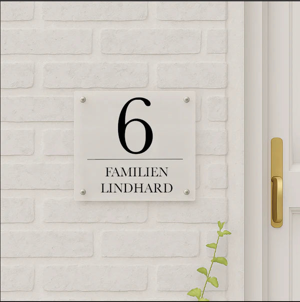 Fremhev familiens navn og legg til et snev av eleganse i hjemmet ditt med vårt personlige husskilt i akryl.