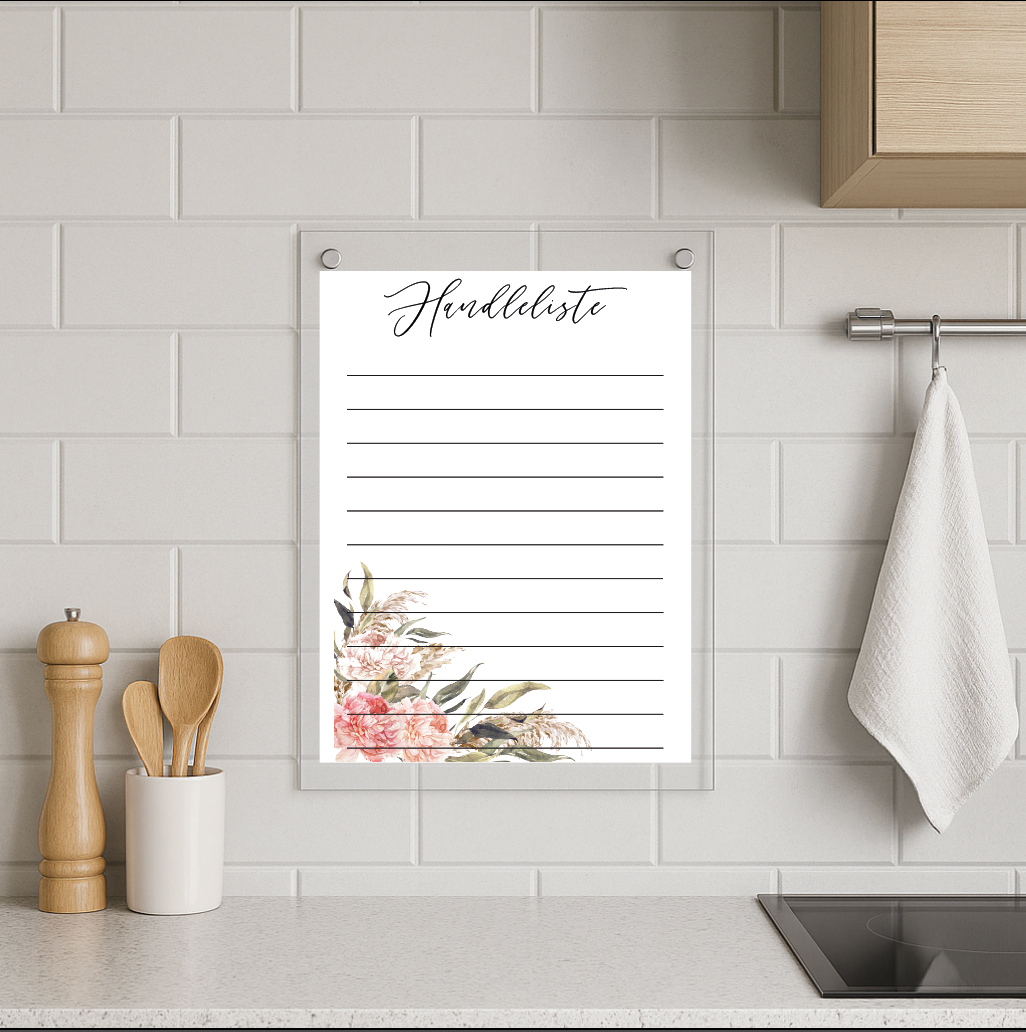 Handleliste - Rosa blomster - Akryl - 24x33 cm
