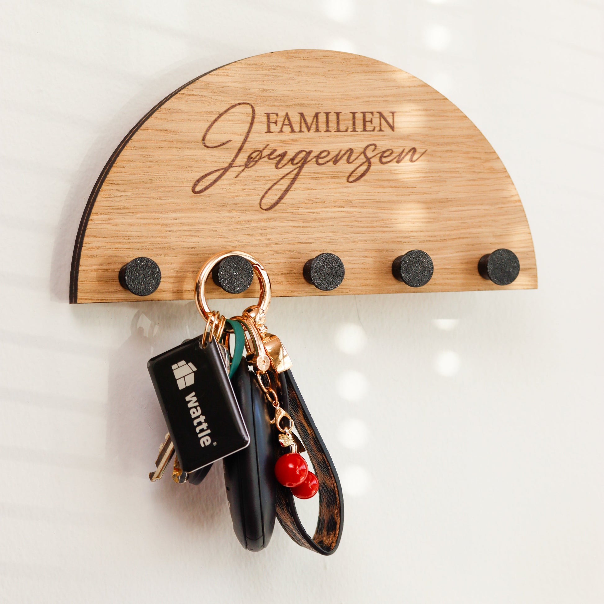 Hold orden på nøklene dine med en elegant og personlig nøkkelholder i massiv eik.