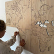 Dette unike verdenskartet måler 145 × 76,5 cm og er nøye produsert i eik, noe som gir det et varmt og naturlig uttrykk som passer inn i de fleste interiørstiler.