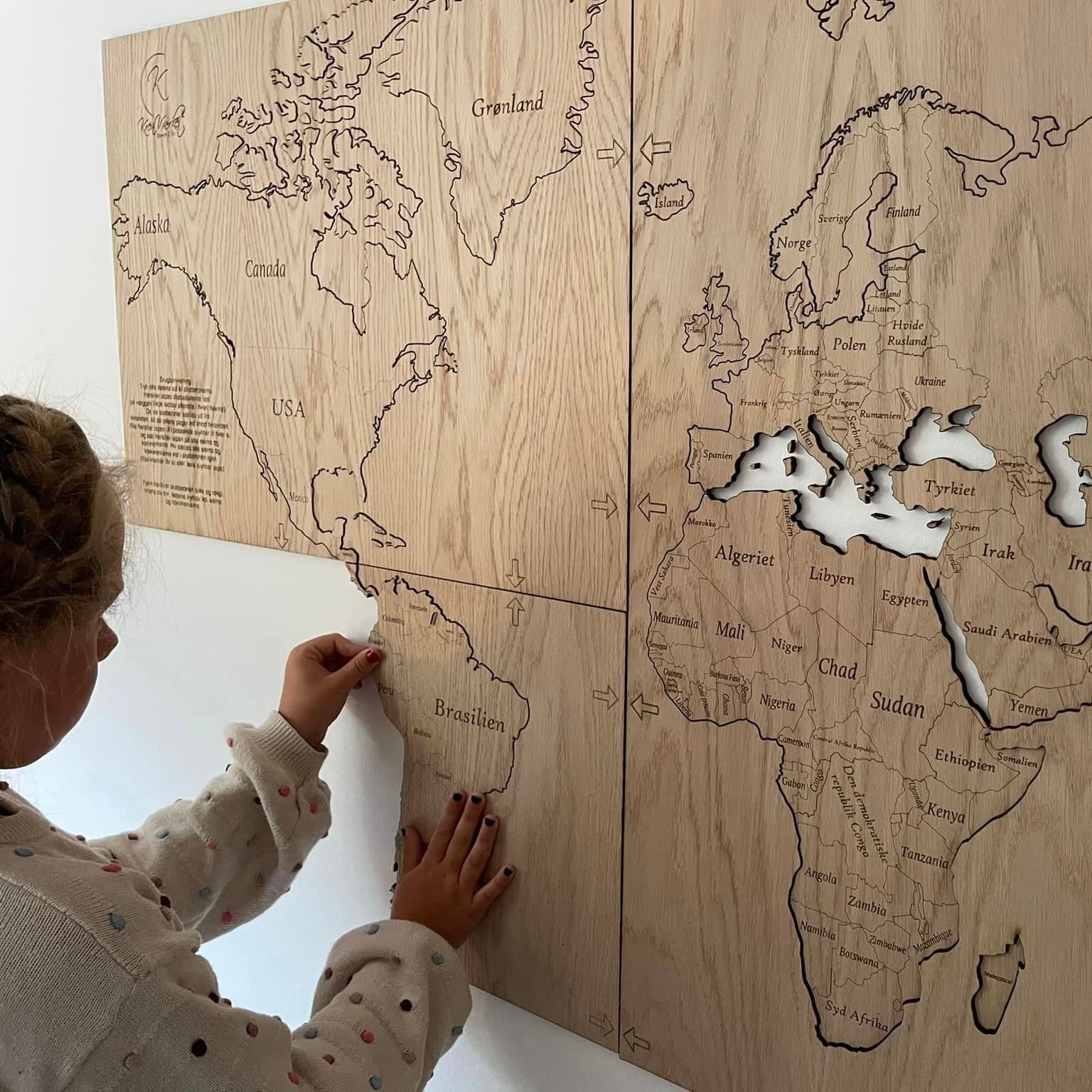 Drømmer du om å utforske verden? Nå kan du starte reisen hjemmefra med et vakkert og detaljert verdenskart, skåret og gravert i solid eiketre.