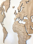 Verdenskart med inngraverte land og grenser - Eiketre - 145x76,5 cm.
