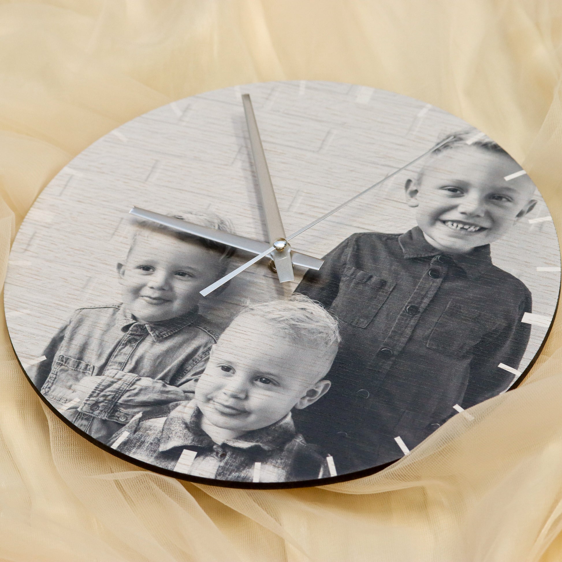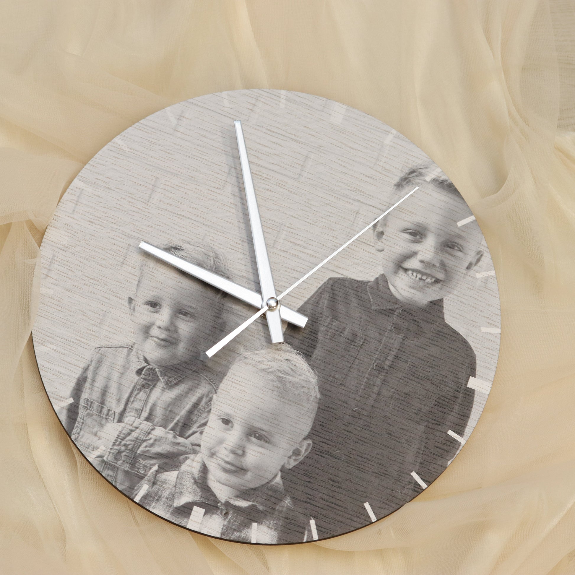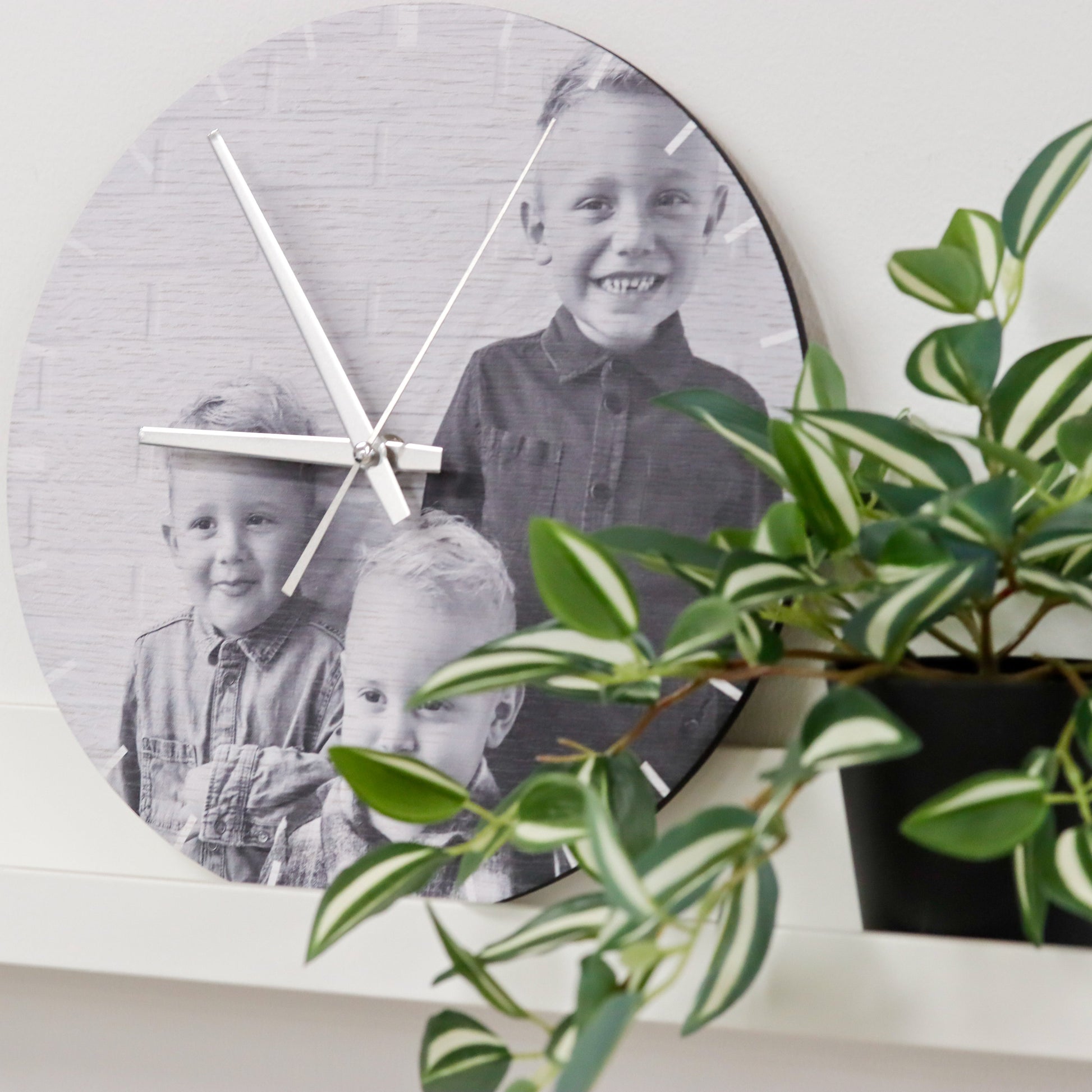 Det særlige ved dette ur er, at det kan printes med dit eget billede. Uanset om det er et minde fra en særlig dag, et familiefoto eller et kunstnerisk motiv, bliver dit vægur en helt personlig dekoration i dit hjem.