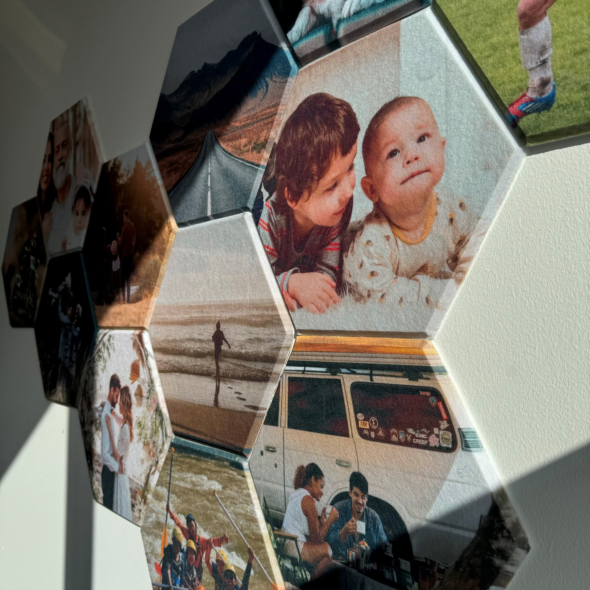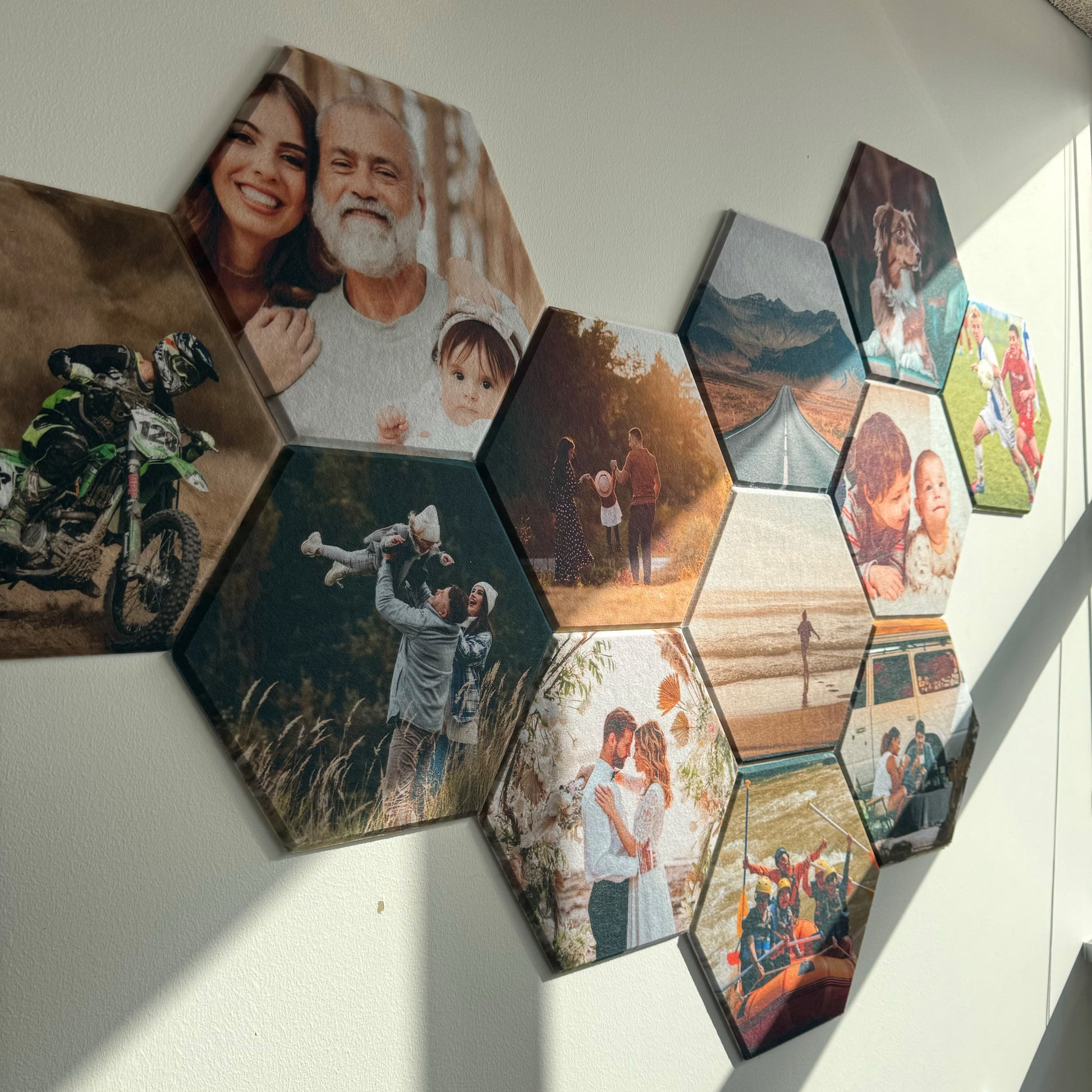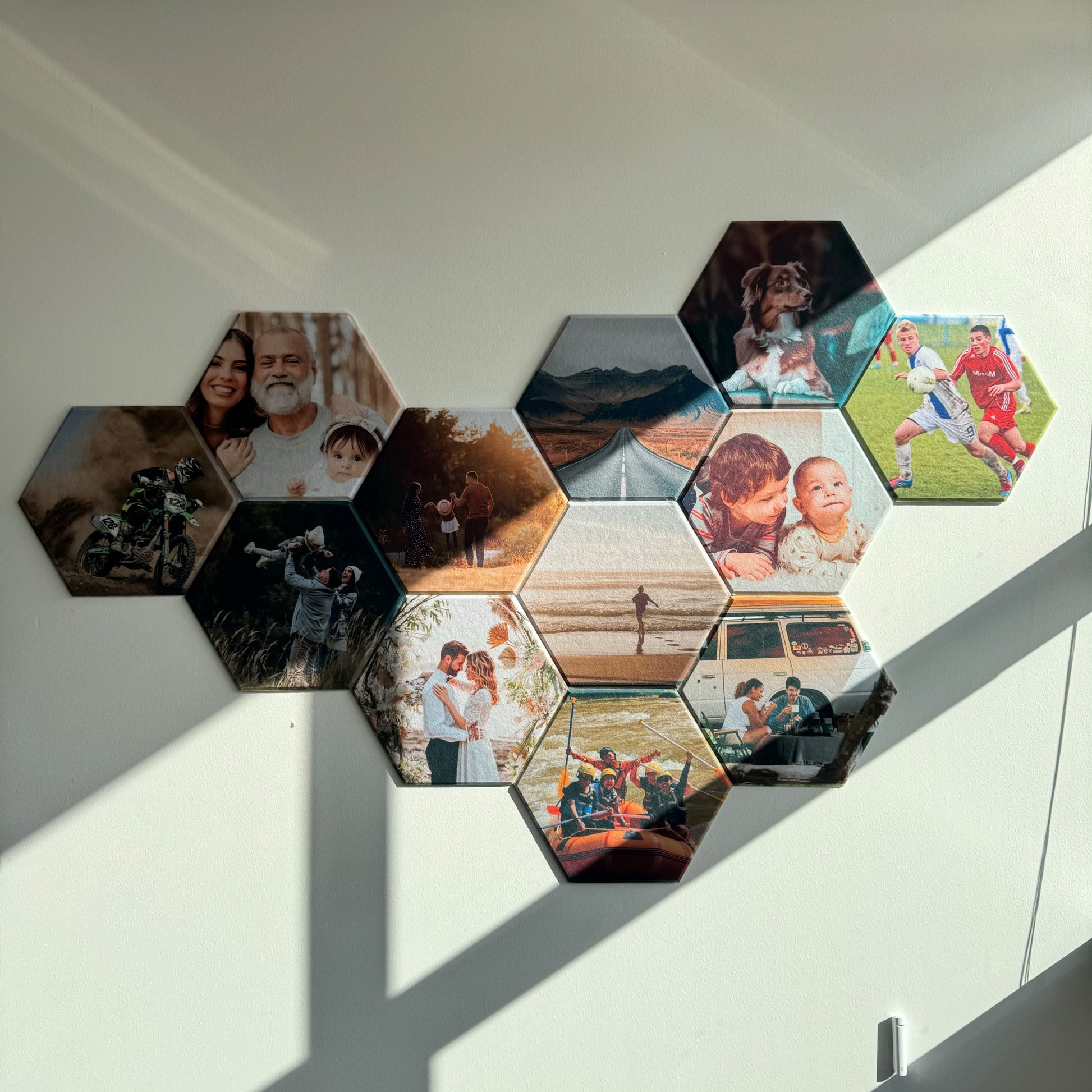 Lydabsorberende sekskantede plater med personlig bilde- 30x26 cm.