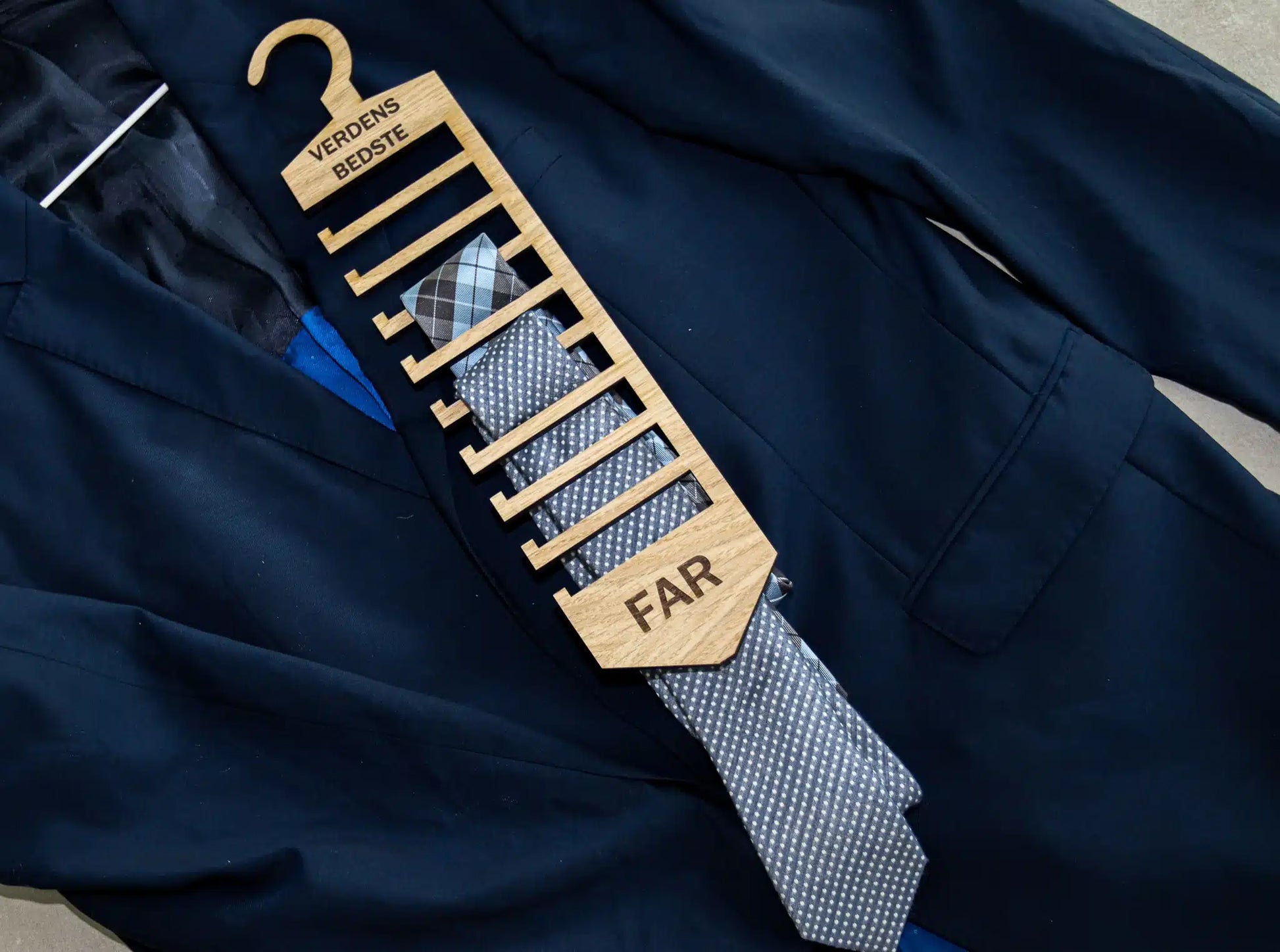 Vår personlige slipsopphenger hjelper til med å holde orden på slipsene på en elegant og oversiktlig måte.