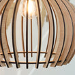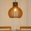 Denne moderne taklampen i tre kombinerer skandinavisk minimalisme med naturlig varme. Lampens unike design med buede lameller fremhever den vakre pæren og skaper et behagelig, mykt lys over spisebordet. Perfekt som blikkfang i spisestuen, stuen eller kjøkkenet, hvor den tilfører både hygge og stil.