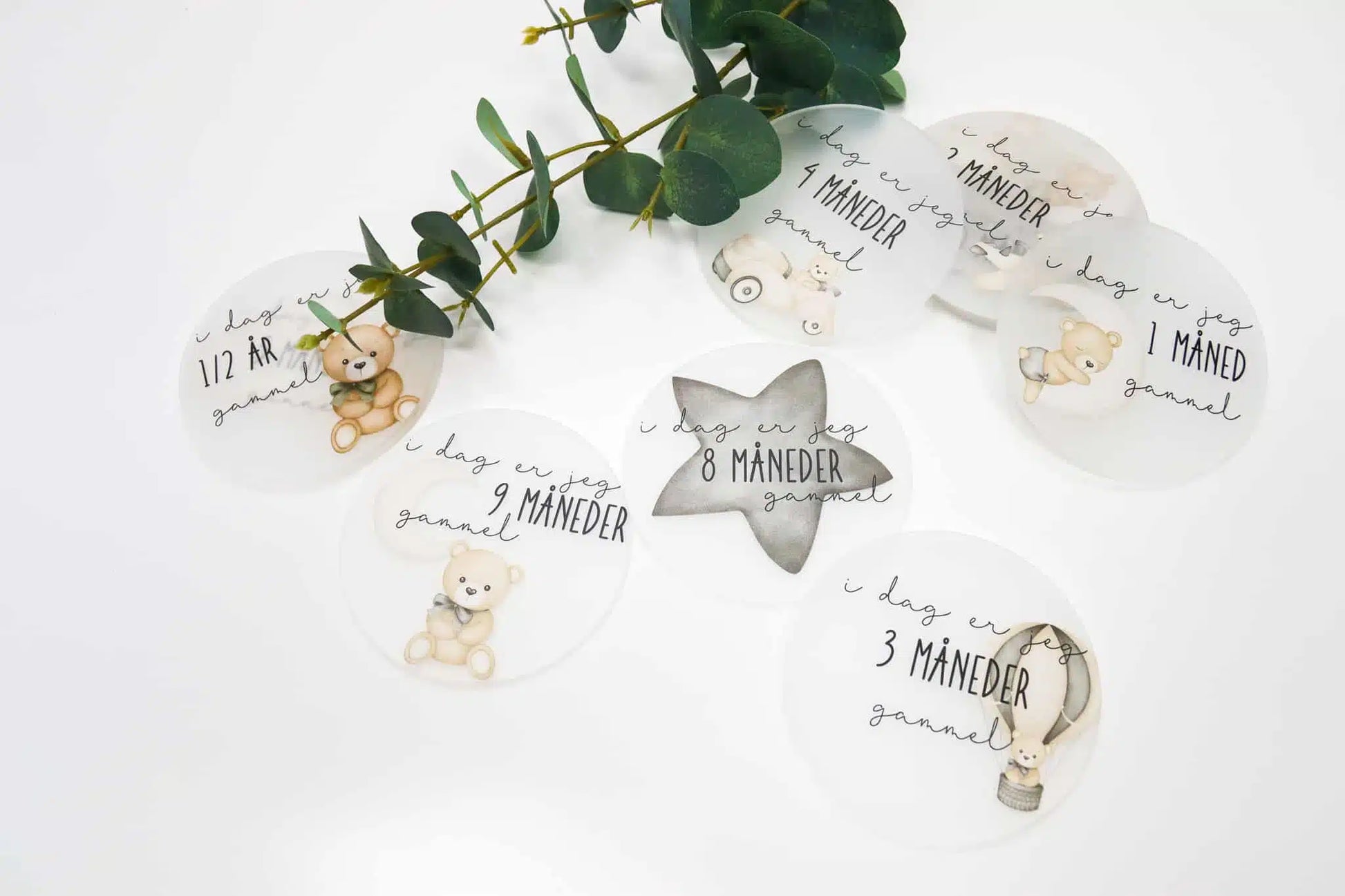 Hver milepæl måler 10 cm i diameter og er trykt med de søteste motivene!