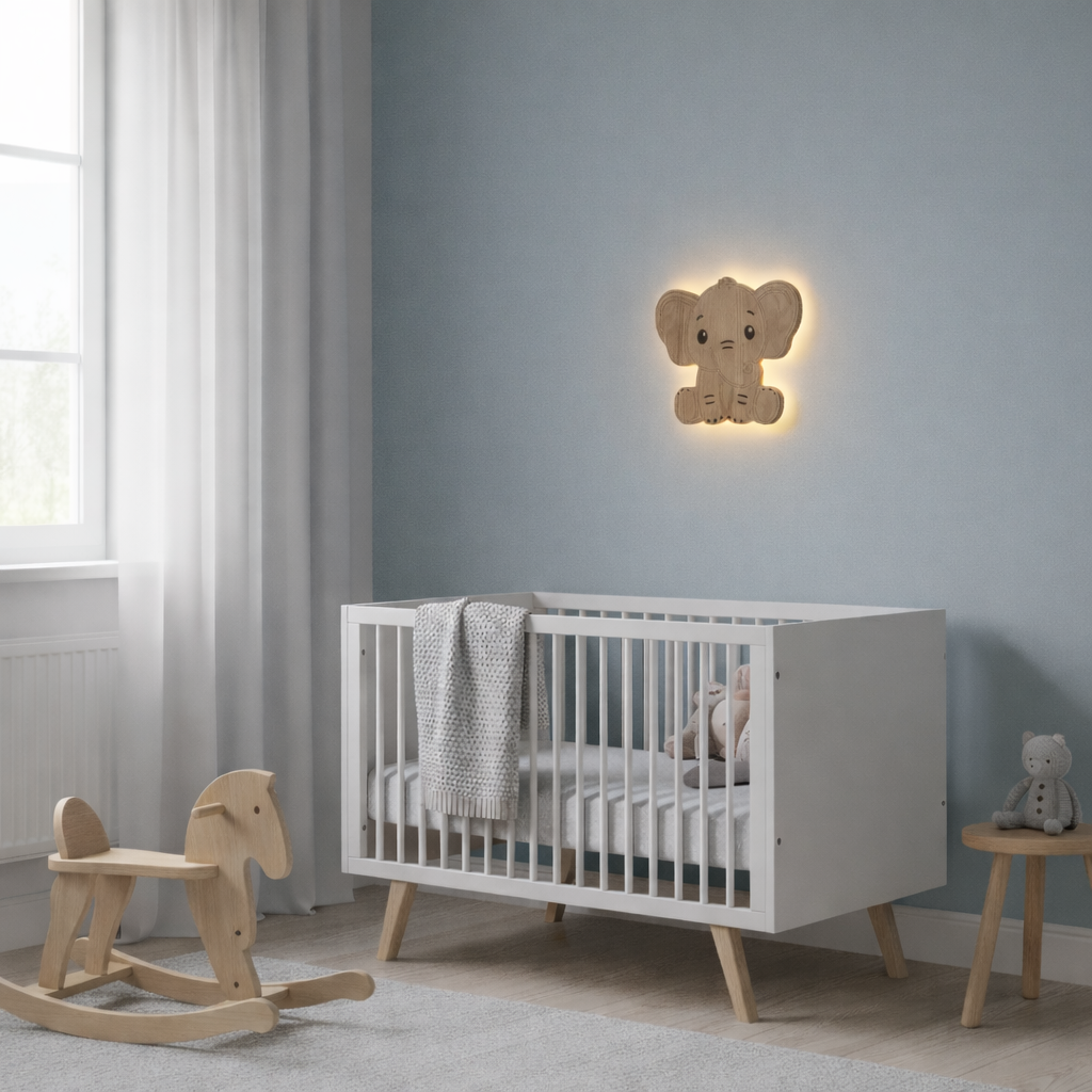 Skap en rolig og trygg atmosfære på barnerommet med vår barnelampe i vakker eik, designet med fokus på både estetikk, funksjonalitet og personlighet.