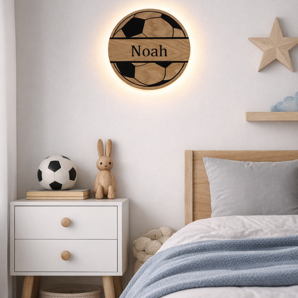 Skap en rolig og trygg atmosfære på barnerommet med vår barnelampe i vakker eik, designet med fokus på både estetikk, funksjonalitet og personlighet.