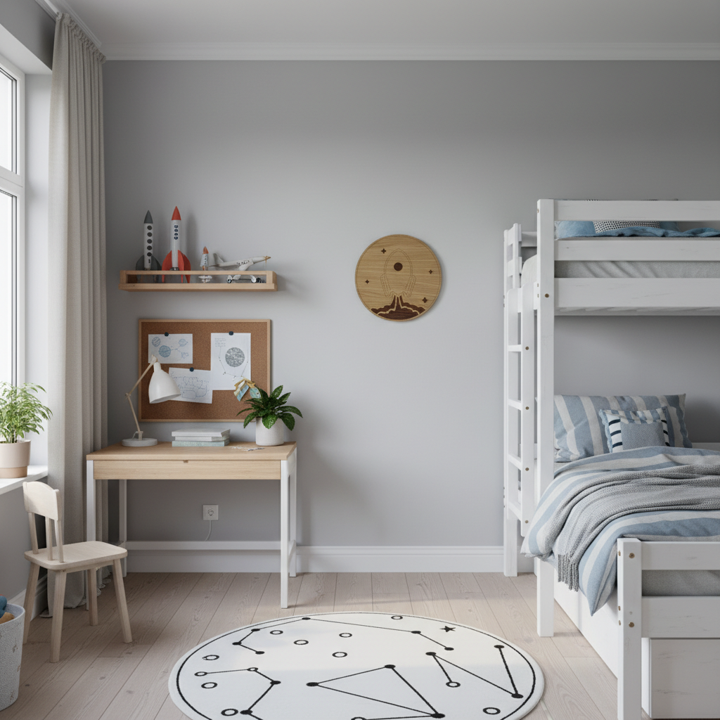 Skap en rolig og trygg atmosfære på barnerommet med vår barnelampe i vakker eik, designet med fokus på både estetikk, funksjonalitet og personlighet.