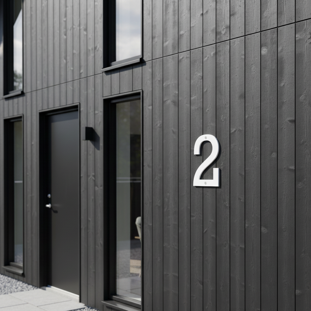Våre husnumre er laget av slitesterkt akryl som sikrer både lang levetid og et elegant uttrykk. Du kan velge mellom tre stilrene farger: hvit, svart og matt svart, slik at du enkelt kan finne det alternativet som passer perfekt til hjemmet ditt.