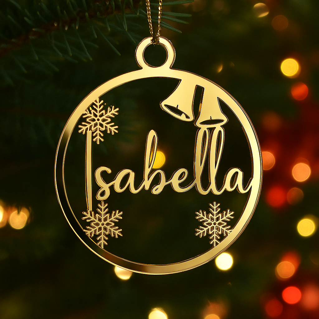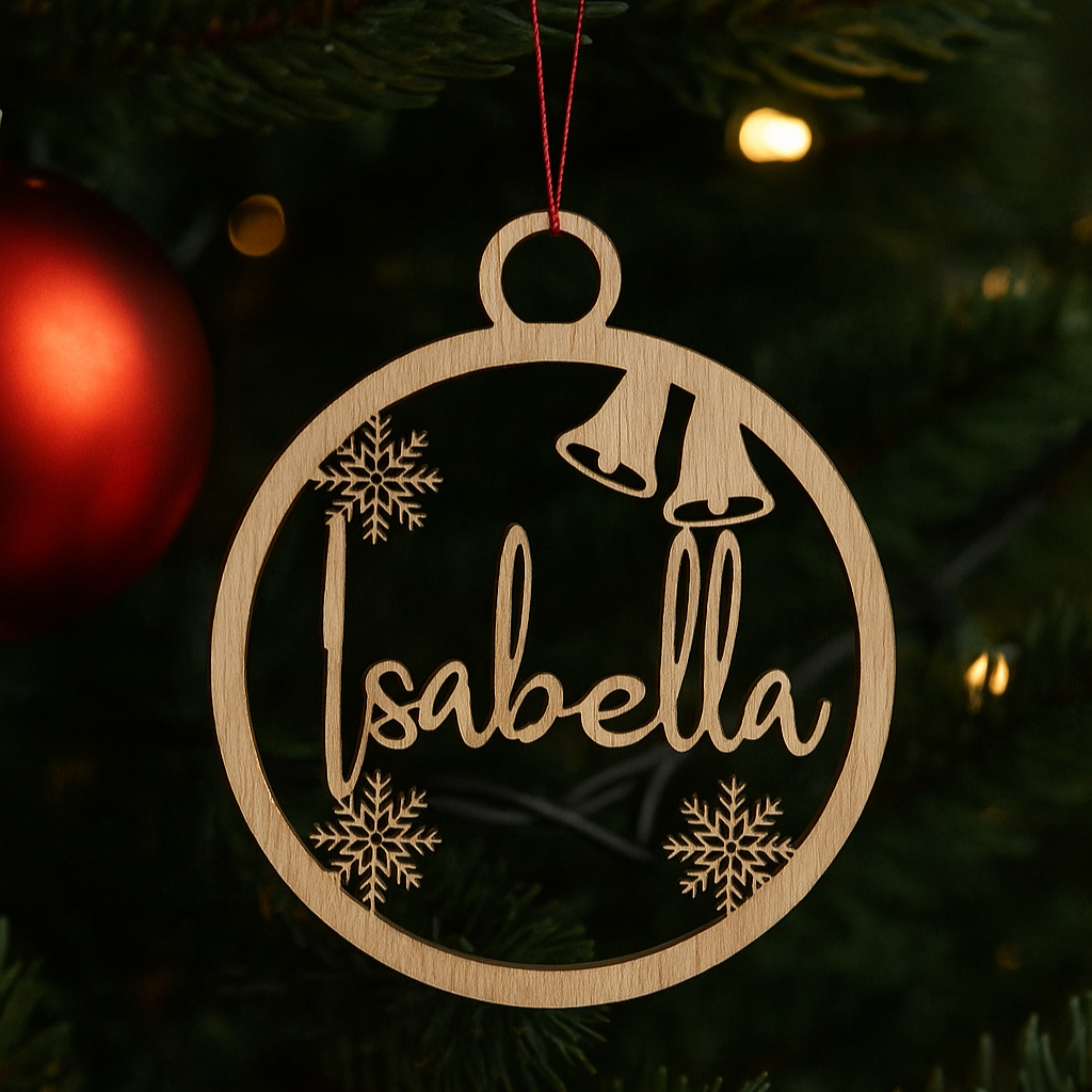 Skriv inn navnet du ønsker i tekstfeltet, så lager vi juletrepynten personlig – en varm og stemningsfull detalj til juletreet.
